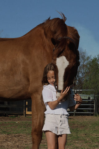 The most magical part is sharing it with my daughter. Seeing Navy out in the fresh air brings me so much joy. These days I am constantly living in the realm of the "both/and". I am exhausted, and I am deliriouslyyy happy !! The stables have become our sanctuary within that chaos. We do not have to have it all figured out. It is messy, it is beautiful, and it is ours. As I always remind myself, sometimes less than perfect is exactly right.